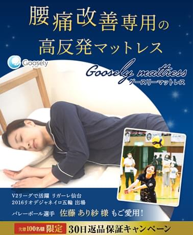 起床時の腰痛に悩み続けていたのですが、グースリーを購入し就寝したところ、使用後2週間ほどでその痛みを感じなくなりました。最初はとても硬い気がしましたが、いまでは慣れましたしとても満足しています。