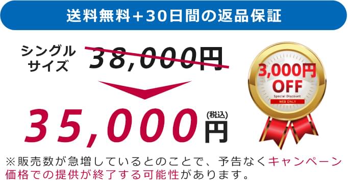 ![]() | ![]() | A+ | 66,000円~ | 腰痛対策 高反発 薄型 収納性 返金保証 | - 公表値無し | - 公表値無し | △ 7kg | × | × |