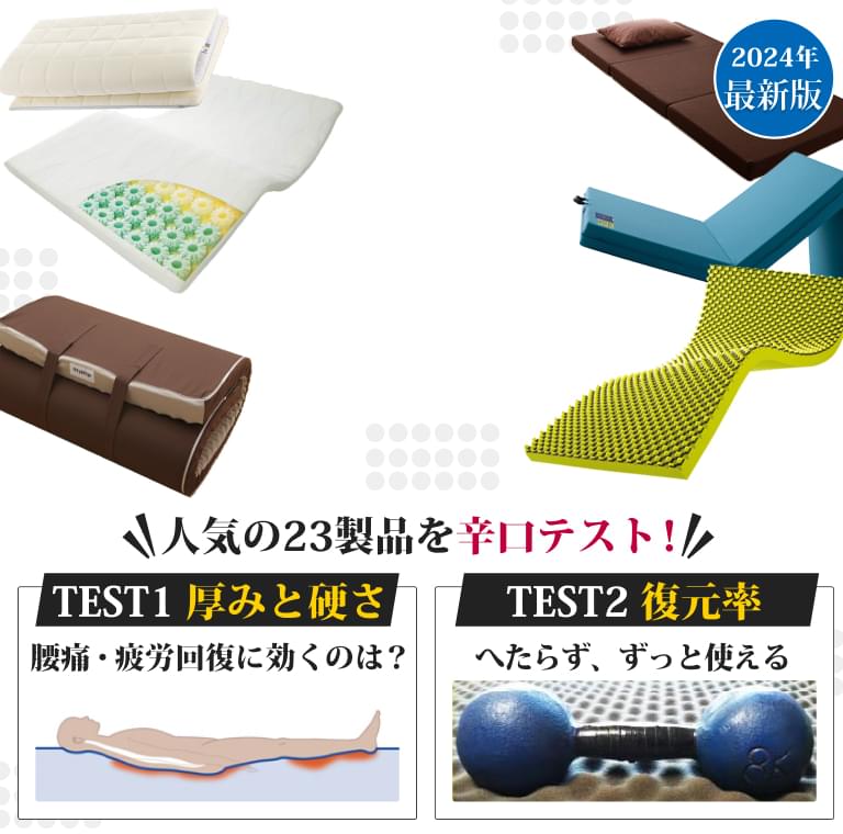 ![]() | ![]() | A+ | 88,000円~ | 腰痛対策 高反発 薄型 収納性 | - 公表値無し | ○ 96.4% | △ 6.85kg | ○ 抗菌・消臭 | × |